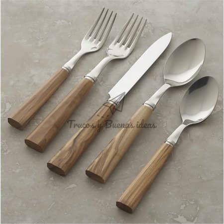 ¿Tienes una bonita cubertería con los mangos de madera? Para que no pierdan el brillo y la madera no se cuartee, pasa periódicamente por esa zona un paño embebido en aceite de oliva: la nutrirá y mantendrá en perfecto estado.