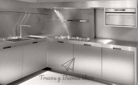 Las cocinas de acero se han puesto de moda y hay que reconocer que las encimeras de las cocinas en acero inoxidable son muy higiénicas. El problema aparece al querer que brillen. ¿Un truco? Frotar el acero con un paño empapado en ginebra. Pule después con otro paño suave y bien seco.